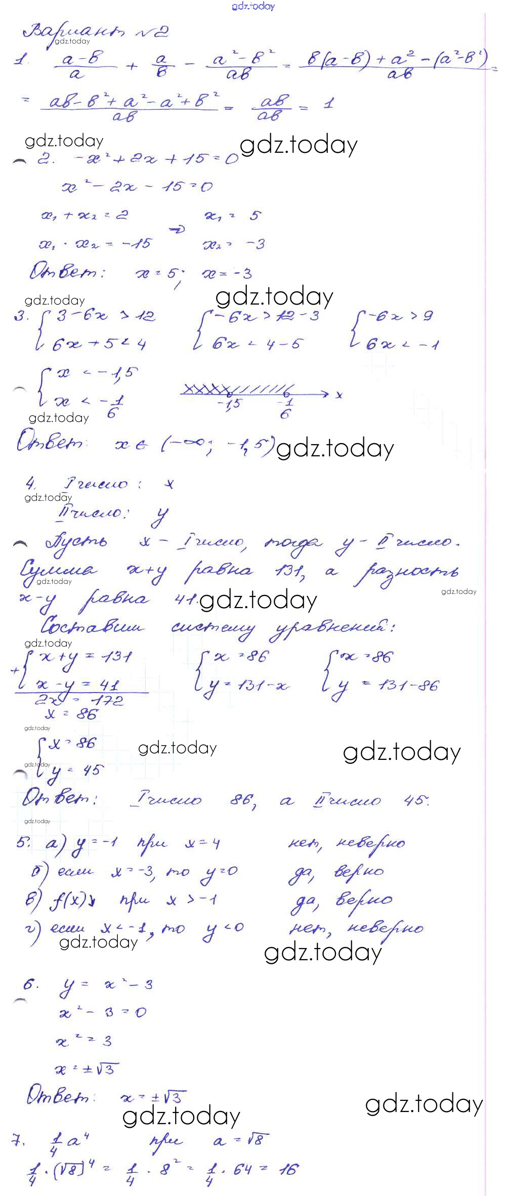 Ответы к Работа 58 Решение к части 1 Вариант-2 Сборнику заданий по Алгебре для 9 класса Кузнецова, Бунимович Дрофа 2008