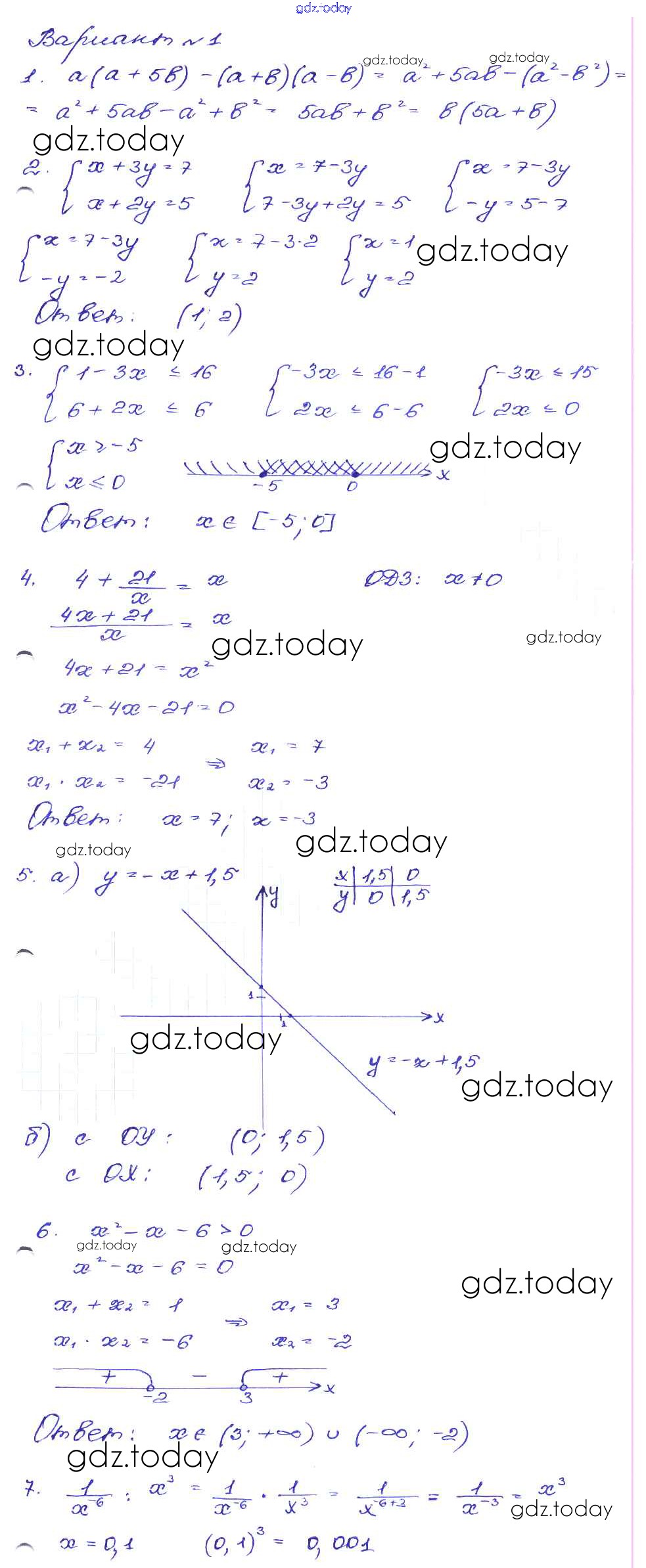 Ответы к Работа 61 Решение к части 1 Вариант-1 Сборнику заданий по Алгебре для 9 класса Кузнецова, Бунимович Дрофа 2008