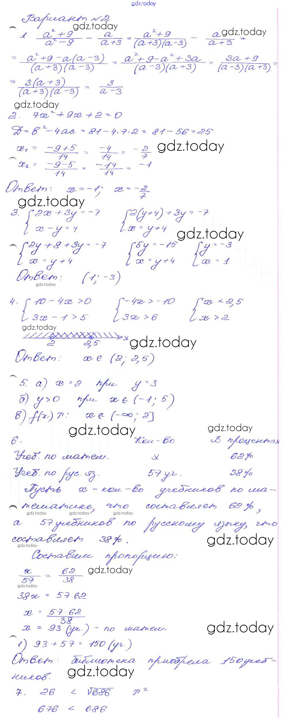 Ответы к Работа 66 Решение к части 1 Вариант-2 Сборнику заданий по Алгебре для 9 класса Кузнецова, Бунимович Дрофа 2008