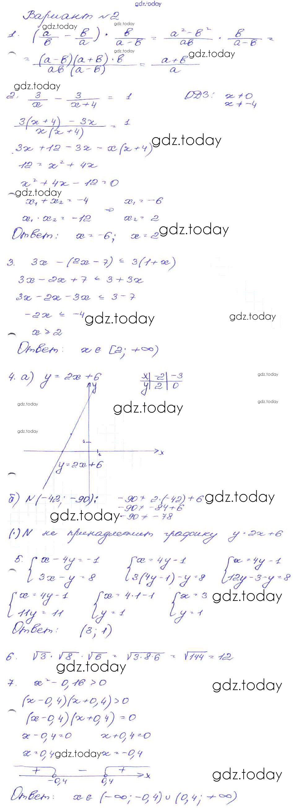 Ответы к Работа 67 Решение к части 1 Вариант-2 Сборнику заданий по Алгебре для 9 класса Кузнецова, Бунимович Дрофа 2008