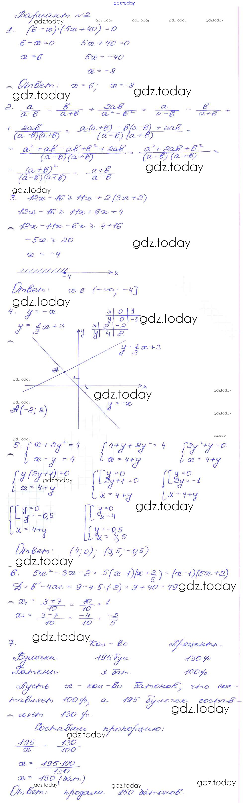 Ответы к Работа 69 Решение к части 1 Вариант-2 Сборнику заданий по Алгебре для 9 класса Кузнецова, Бунимович Дрофа 2008