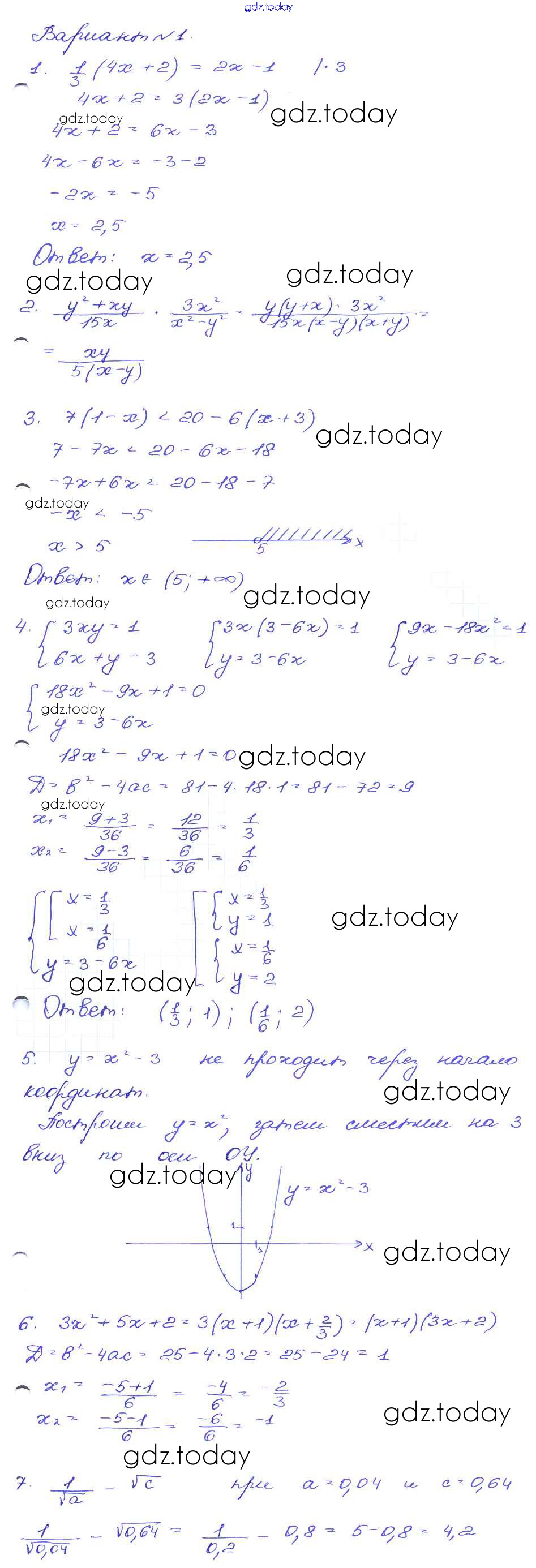 Ответы к Работа 71 Решение к части 1 Вариант-1 Сборнику заданий по Алгебре для 9 класса Кузнецова, Бунимович Дрофа 2008
