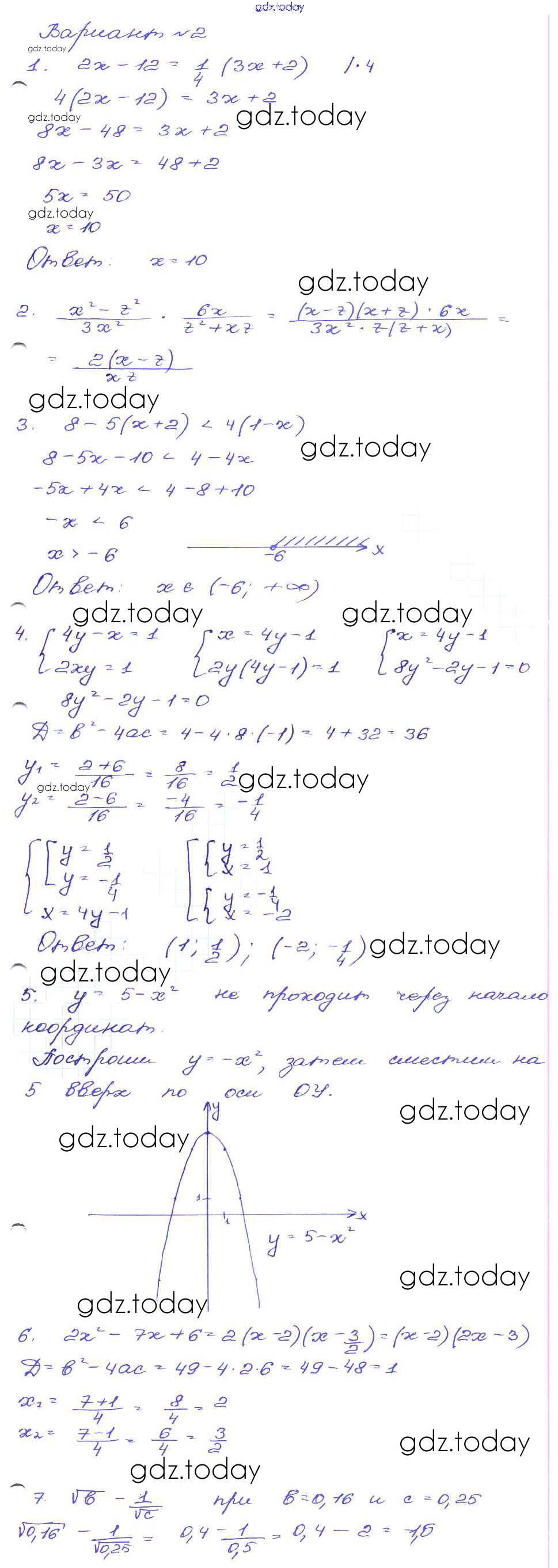 Ответы к Работа 71 Решение к части 1 Вариант-2 Сборнику заданий по Алгебре для 9 класса Кузнецова, Бунимович Дрофа 2008