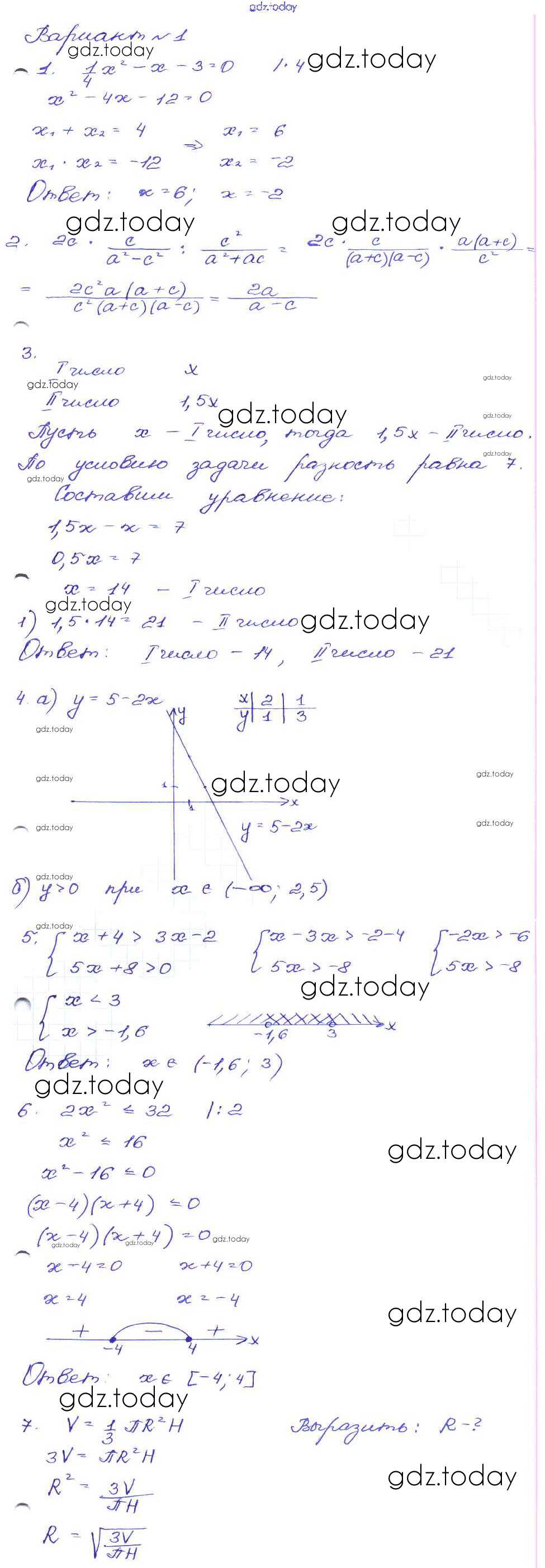 Ответы к Работа 72 Решение к части 1 Вариант-1 Сборнику заданий по Алгебре для 9 класса Кузнецова, Бунимович Дрофа 2008