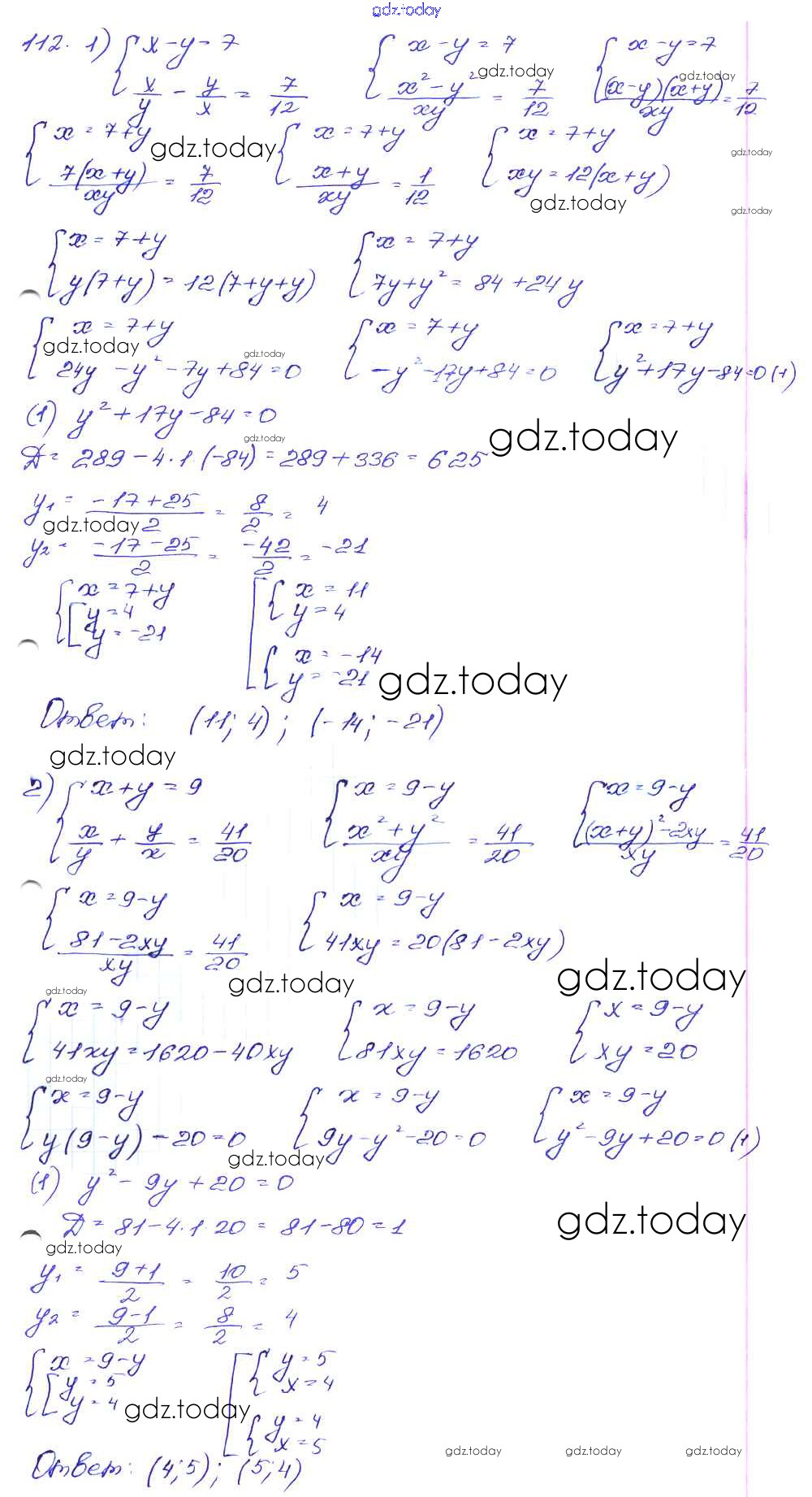 Ответы к Решение к части 2. Задания 112 Сборнику заданий по Алгебре для 9 класса Кузнецова, Бунимович Дрофа 2008