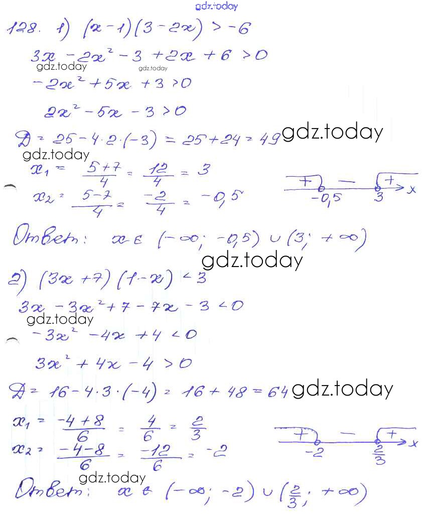 Ответы к Решение к части 2. Задания 128 Сборнику заданий по Алгебре для 9 класса Кузнецова, Бунимович Дрофа 2008