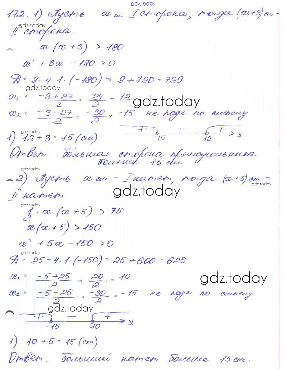 Ответы к Решение к части 2. Задания 172 Сборнику заданий по Алгебре для 9 класса Кузнецова, Бунимович Дрофа 2008