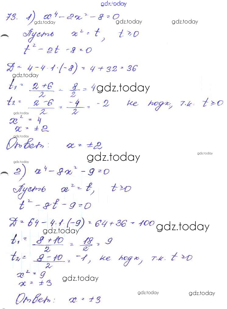 На страницах сайта gdz.today вы найдете учебный и вспомогательный материал, направленный на улучшения знаний школьной программы. ГДЗ - онлайн мир знаний Решение к части 2. Задания 73 Сборнику заданий по Алгебре для 9 класса Кузнецова, Бунимович Дрофа 2008