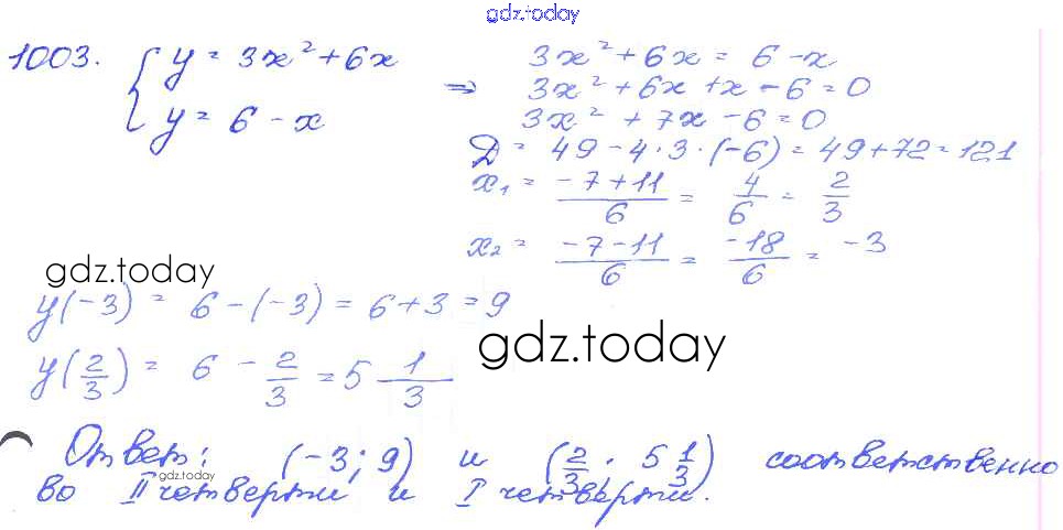 Ответы к Решение к приложению 1003 Сборнику заданий по Алгебре для 9 класса Кузнецова, Бунимович Дрофа 2008