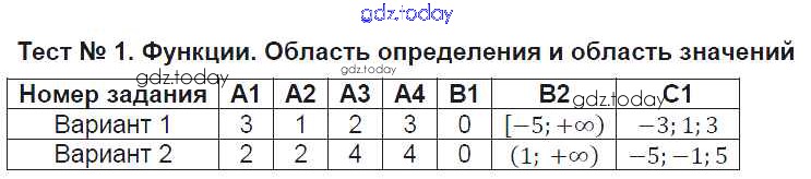 На страницах сайта gdz.today вы найдете учебный и вспомогательный материал, направленный на улучшения знаний школьной программы. ГДЗ - онлайн мир знаний Решение к тестам Тест №1. Функции. Область определения и область значений Контрольно-измерительным материалам (КИМ) по Алгебре для 9 класса Мартышова ВАКО 2015