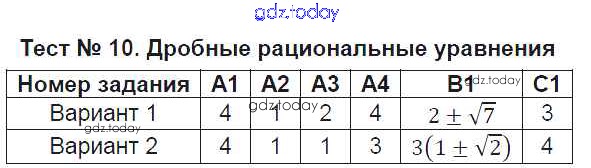 На страницах сайта gdz.today вы найдете учебный и вспомогательный материал, направленный на улучшения знаний школьной программы. ГДЗ - онлайн мир знаний Решение к тестам Тест №10. Дробные рациональные уравнения Контрольно-измерительным материалам (КИМ) по Алгебре для 9 класса Мартышова ВАКО 2015