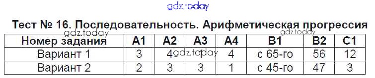 На страницах сайта gdz.today вы найдете учебный и вспомогательный материал, направленный на улучшения знаний школьной программы. ГДЗ - онлайн мир знаний Решение к тестам Тест №16. Последовательность. Арифметическая прогрессия Контрольно-измерительным материалам (КИМ) по Алгебре для 9 класса Мартышова ВАКО 2015
