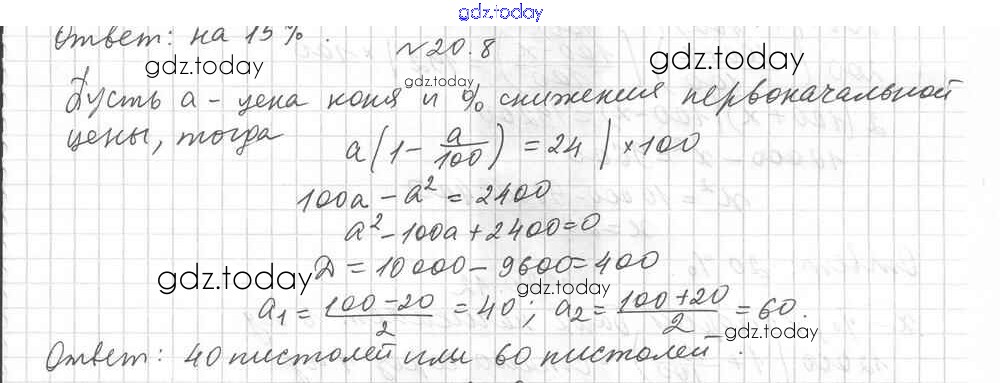 Ответы к Решение §20 20.8 Учебнику по Алгебре для 9 класса Мерзляк, Поляков Углубленный уровень Вентана-граф Алгоритм успеха 2020