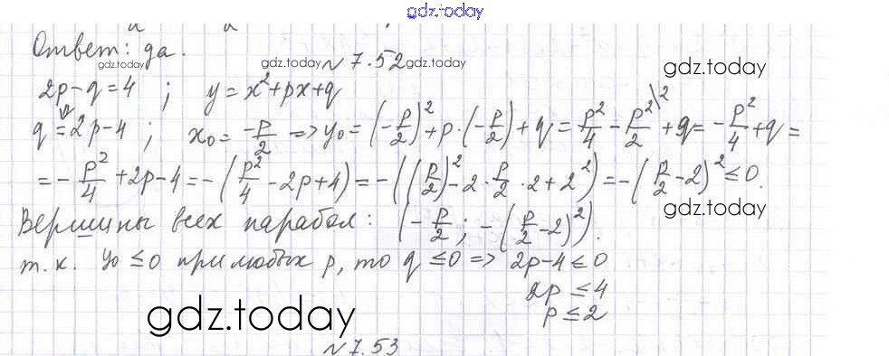 Ответы к Решение §7 7.52 Учебнику по Алгебре для 9 класса Мерзляк, Поляков Углубленный уровень Вентана-граф Алгоритм успеха 2020