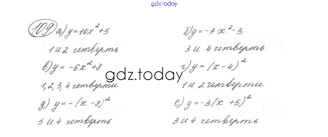 Ответы к Глава 1. Квадратичная функция (упражнения) 109 Учебнику по Алгебре для 9 класса Макарычев, Миндюк Просвещение 2014