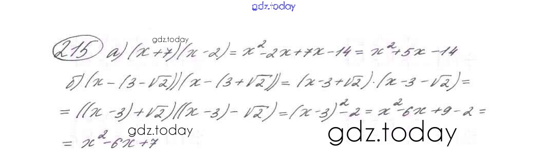 На страницах сайта gdz.today вы найдете учебный и вспомогательный материал, направленный на улучшения знаний школьной программы. ГДЗ - онлайн мир знаний Глава 1. Квадратичная функция (упражнения) 215 Учебнику по Алгебре для 9 класса Макарычев, Миндюк Просвещение 2014