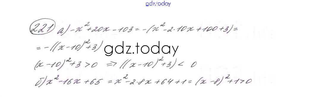 На страницах сайта gdz.today вы найдете учебный и вспомогательный материал, направленный на улучшения знаний школьной программы. ГДЗ - онлайн мир знаний Глава 1. Квадратичная функция (упражнения) 221 Учебнику по Алгебре для 9 класса Макарычев, Миндюк Просвещение 2014