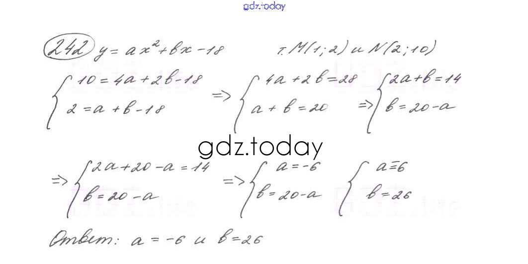 На страницах сайта gdz.today вы найдете учебный и вспомогательный материал, направленный на улучшения знаний школьной программы. ГДЗ - онлайн мир знаний Глава 1. Квадратичная функция (упражнения) 242 Учебнику по Алгебре для 9 класса Макарычев, Миндюк Просвещение 2014