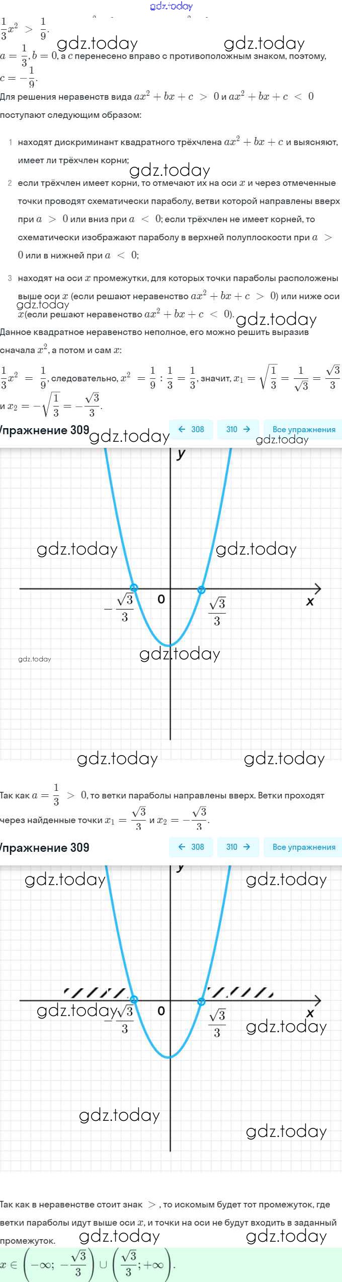 На страницах сайта gdz.today вы найдете учебный и вспомогательный материал, направленный на улучшения знаний школьной программы. ГДЗ - онлайн мир знаний Глава 2. Уравнения и неравенства с одной переменной (упражнения) 309 Учебнику по Алгебре для 9 класса Макарычев, Миндюк Просвещение 2014