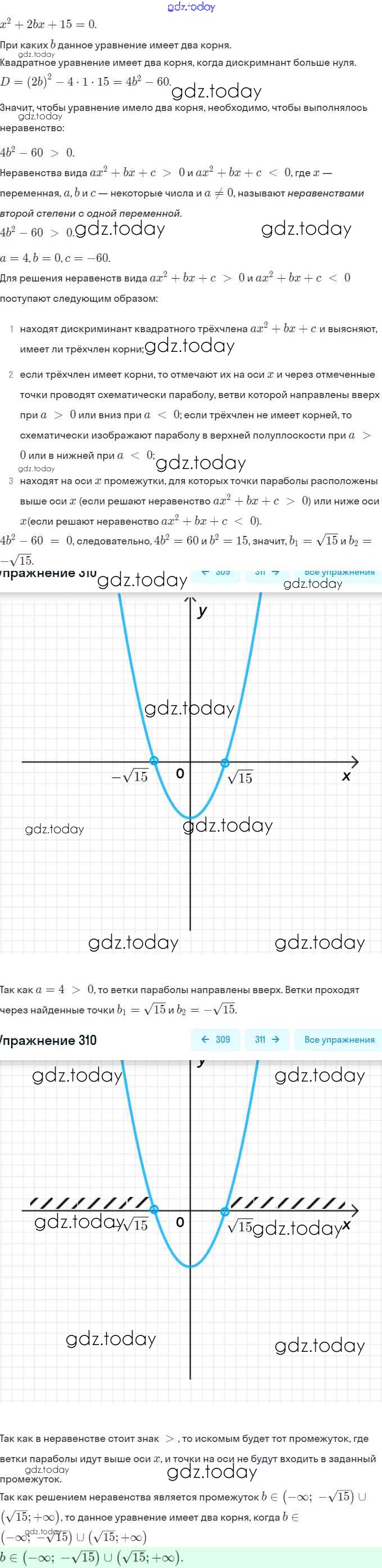 Ответы к Глава 2. Уравнения и неравенства с одной переменной (упражнения) 310 Учебнику по Алгебре для 9 класса Макарычев, Миндюк Просвещение 2014