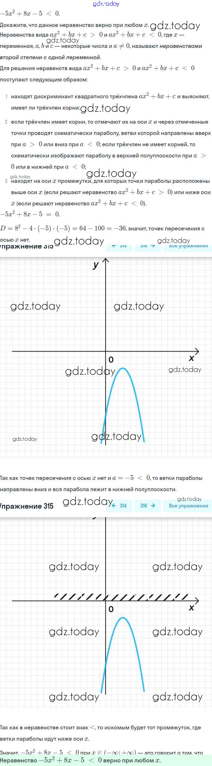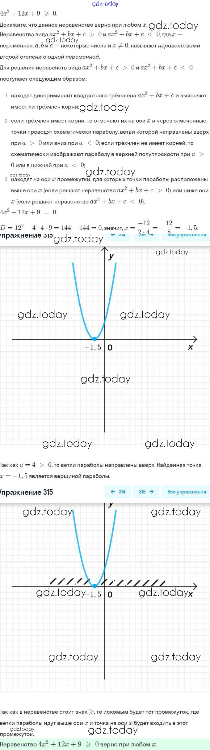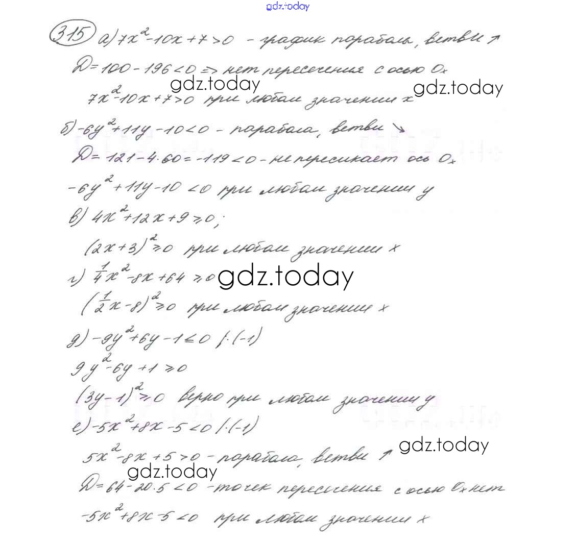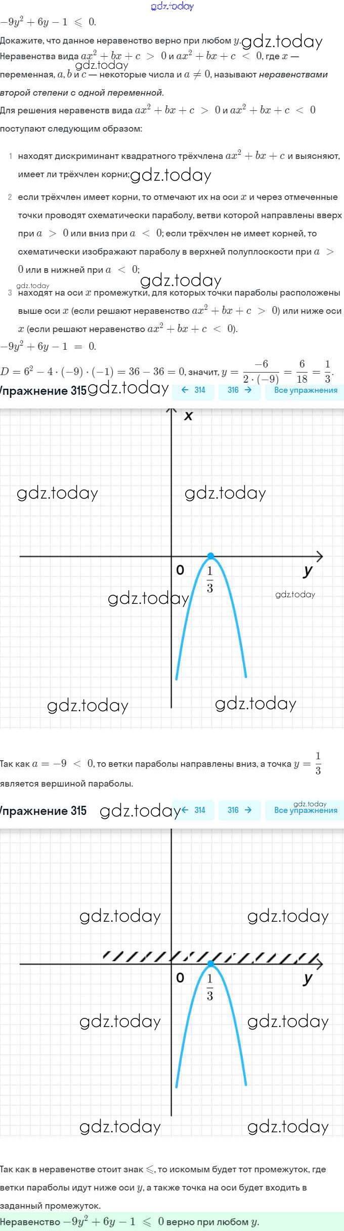 На страницах сайта gdz.today вы найдете учебный и вспомогательный материал, направленный на улучшения знаний школьной программы. ГДЗ - онлайн мир знаний Глава 2. Уравнения и неравенства с одной переменной (упражнения) 315 Учебнику по Алгебре для 9 класса Макарычев, Миндюк Просвещение 2014