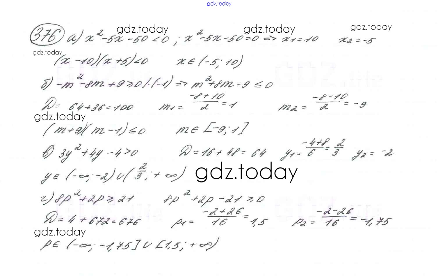 На страницах сайта gdz.today вы найдете учебный и вспомогательный материал, направленный на улучшения знаний школьной программы. ГДЗ - онлайн мир знаний Глава 2. Уравнения и неравенства с одной переменной (упражнения) 376 Учебнику по Алгебре для 9 класса Макарычев, Миндюк Просвещение 2014