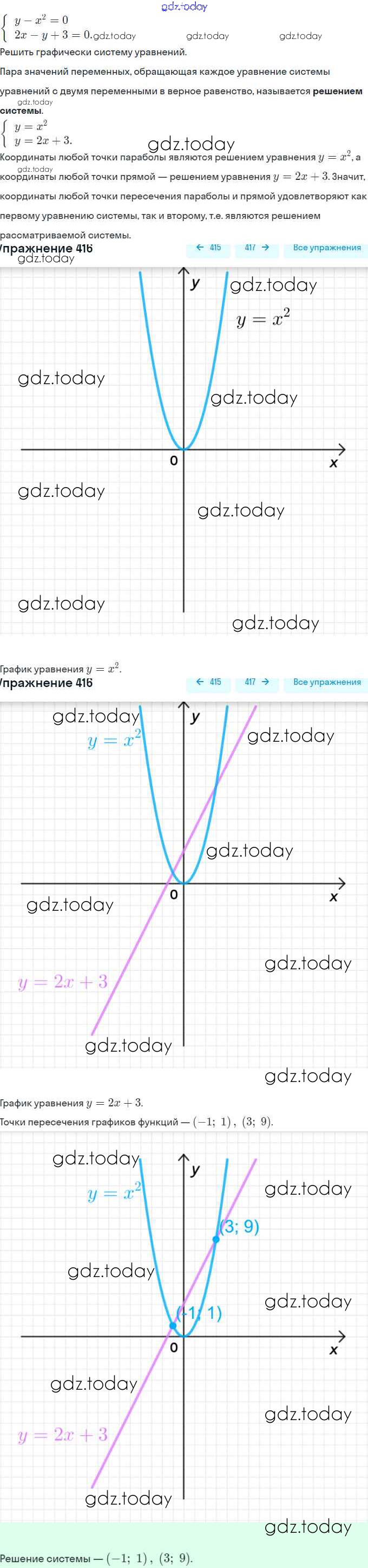 На страницах сайта gdz.today вы найдете учебный и вспомогательный материал, направленный на улучшения знаний школьной программы. ГДЗ - онлайн мир знаний Глава 3. Уравнения и неравенства с двумя переменными (упражнения) 416 Учебнику по Алгебре для 9 класса Макарычев, Миндюк Просвещение 2014