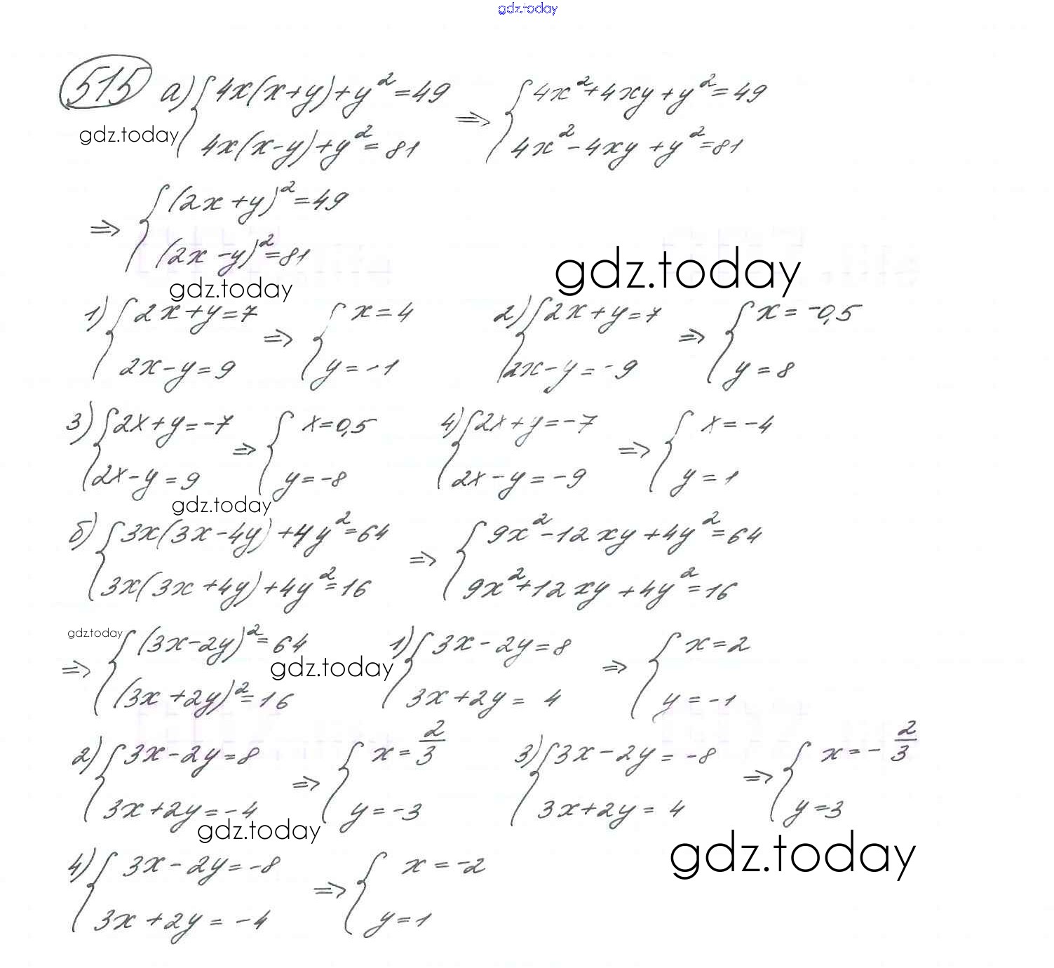 На страницах сайта gdz.today вы найдете учебный и вспомогательный материал, направленный на улучшения знаний школьной программы. ГДЗ - онлайн мир знаний Глава 3. Уравнения и неравенства с двумя переменными (упражнения) 515 Учебнику по Алгебре для 9 класса Макарычев, Миндюк Просвещение 2014