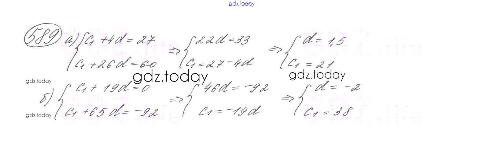 Ответы к Глава 4. Арифметическая и геометрическая прогрессии (упражнения) 589 Учебнику по Алгебре для 9 класса Макарычев, Миндюк Просвещение 2014