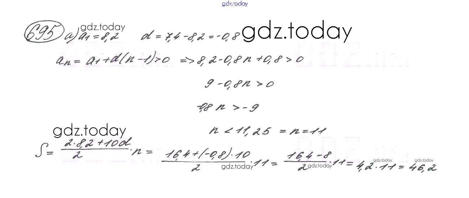 На страницах сайта gdz.today вы найдете учебный и вспомогательный материал, направленный на улучшения знаний школьной программы. ГДЗ - онлайн мир знаний Глава 4. Арифметическая и геометрическая прогрессии (упражнения) 695 Учебнику по Алгебре для 9 класса Макарычев, Миндюк Просвещение 2014