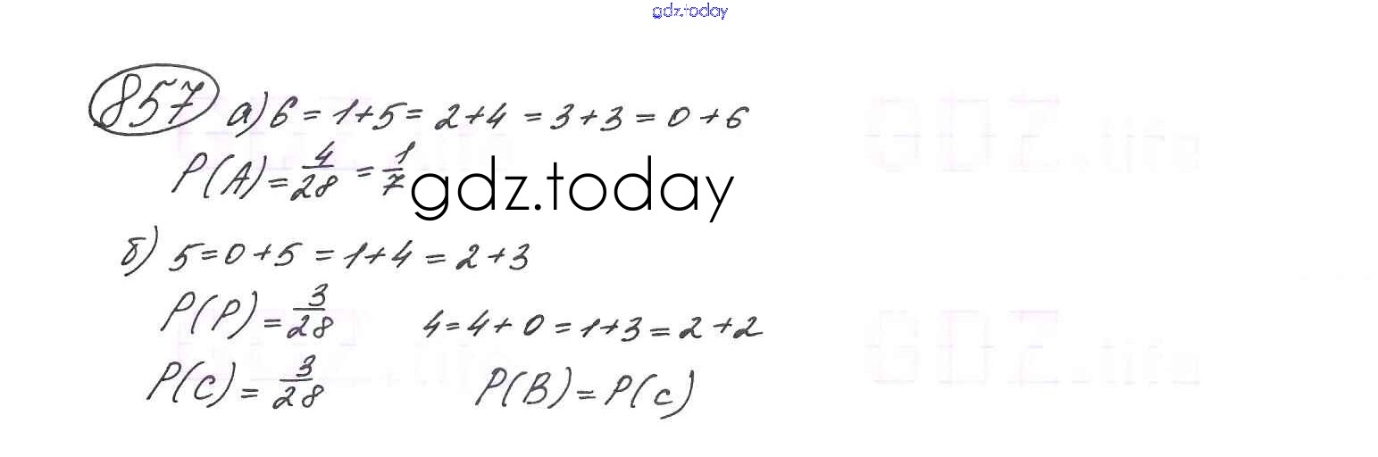 На страницах сайта gdz.today вы найдете учебный и вспомогательный материал, направленный на улучшения знаний школьной программы. ГДЗ - онлайн мир знаний Глава 5. Элементы комбинаторики и теории вероятностей (упражнения) 857 Учебнику по Алгебре для 9 класса Макарычев, Миндюк Просвещение 2014