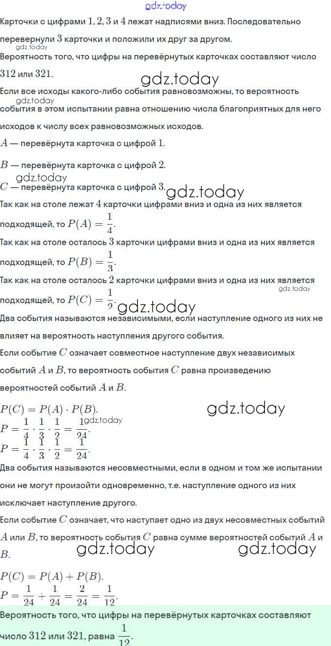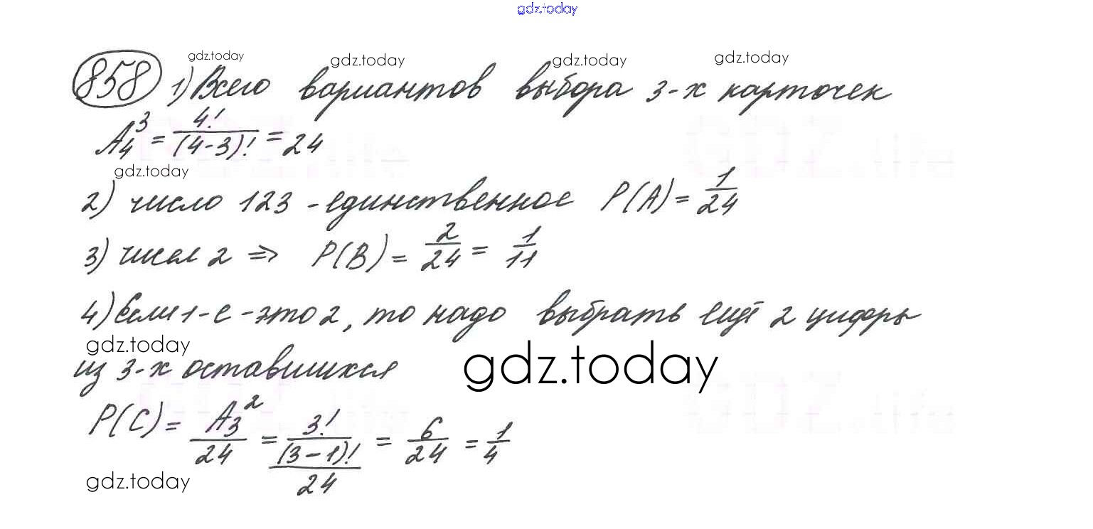 На страницах сайта gdz.today вы найдете учебный и вспомогательный материал, направленный на улучшения знаний школьной программы. ГДЗ - онлайн мир знаний Глава 5. Элементы комбинаторики и теории вероятностей (упражнения) 858 Учебнику по Алгебре для 9 класса Макарычев, Миндюк Просвещение 2014