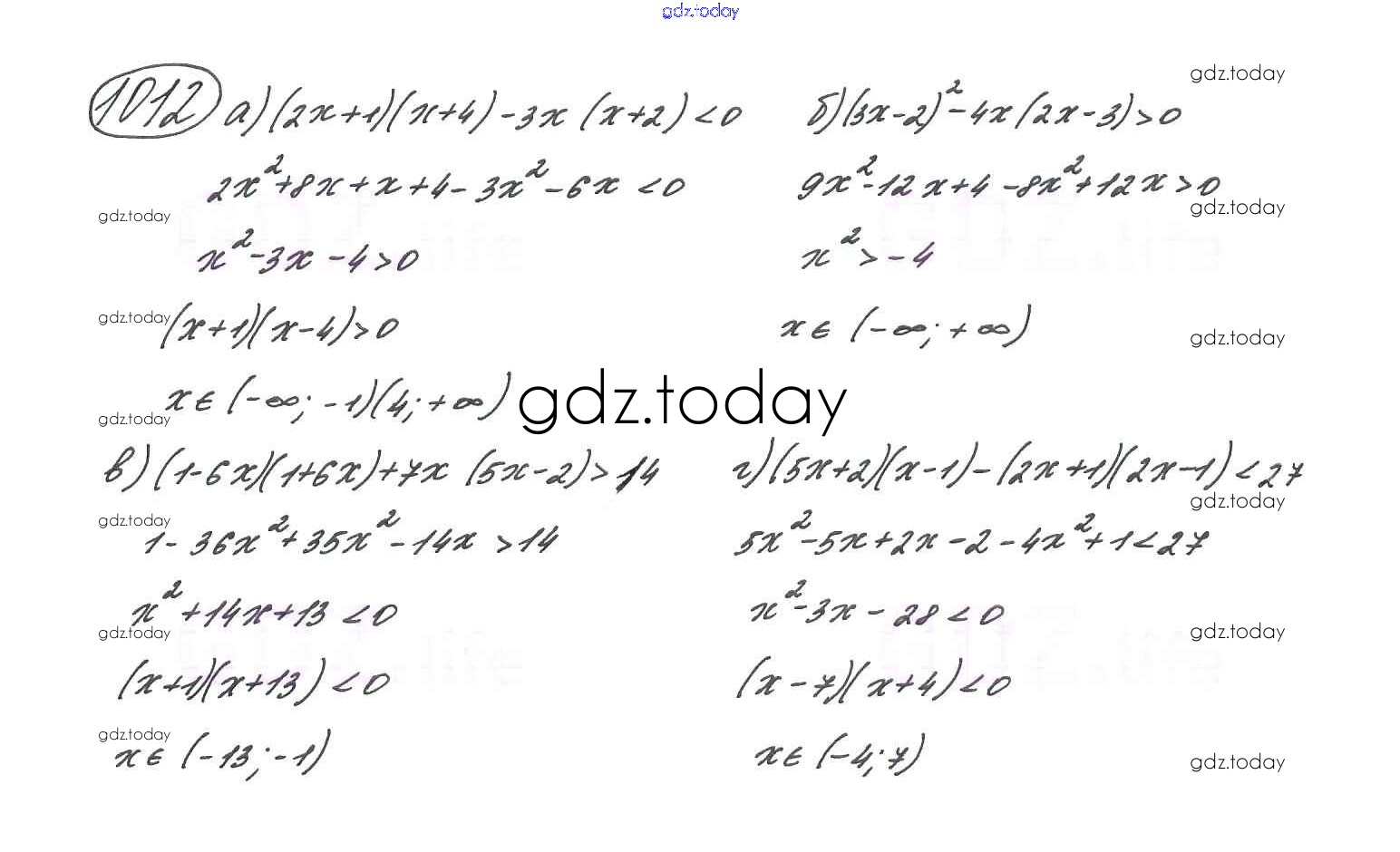 На страницах сайта gdz.today вы найдете учебный и вспомогательный материал, направленный на улучшения знаний школьной программы. ГДЗ - онлайн мир знаний Упражнения для повторения курса 7-9 классов 1012 Учебнику по Алгебре для 9 класса Макарычев, Миндюк Просвещение 2014