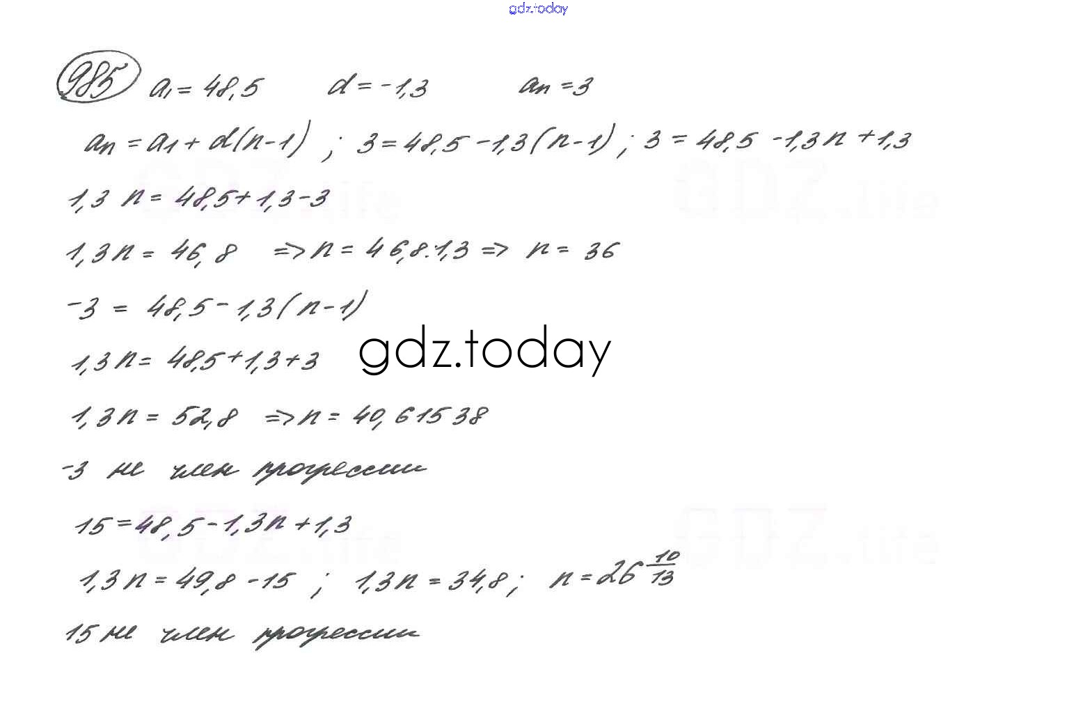 Ответы к Упражнения для повторения курса 7-9 классов 985 Учебнику по Алгебре для 9 класса Макарычев, Миндюк Просвещение 2014