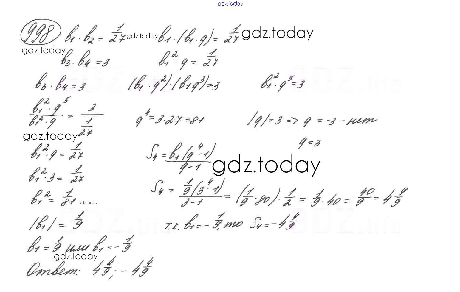 Ответы к Упражнения для повторения курса 7-9 классов 998 Учебнику по Алгебре для 9 класса Макарычев, Миндюк Просвещение 2014