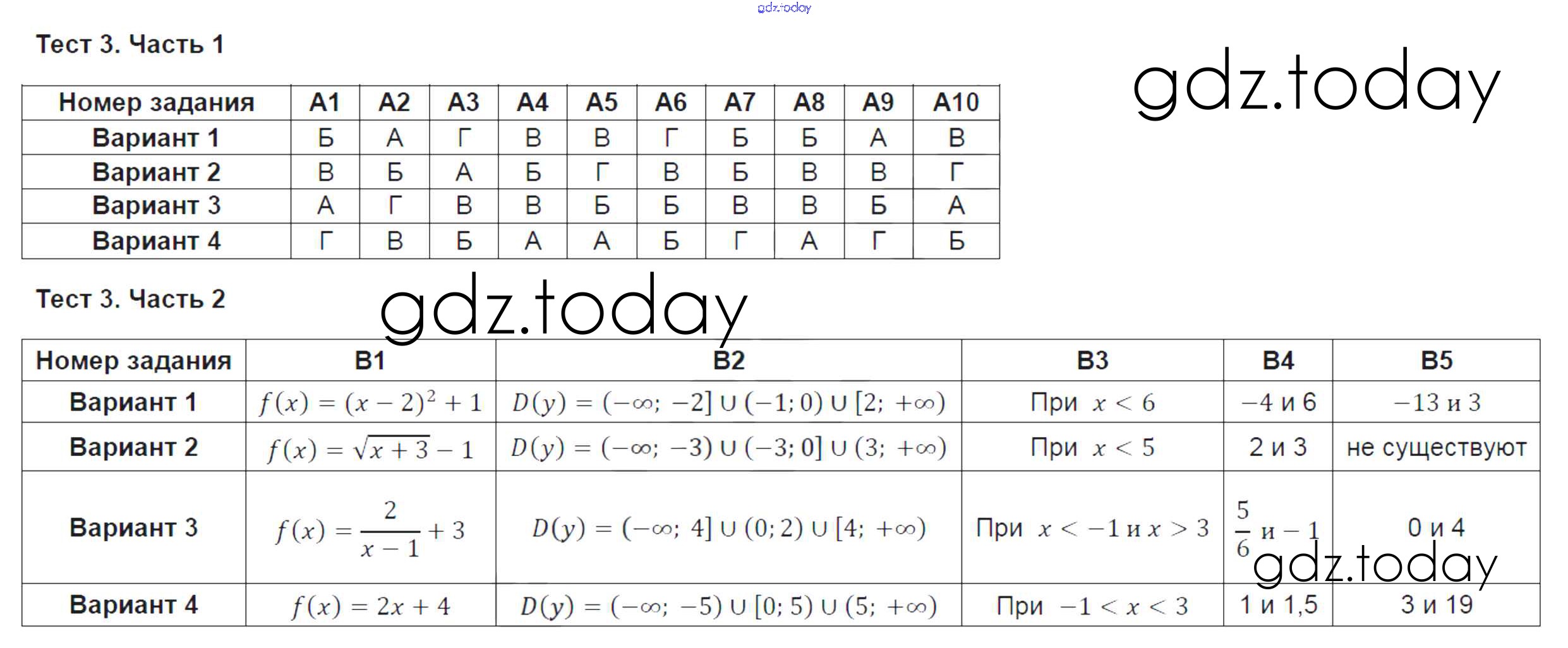 На страницах сайта gdz.today вы найдете учебный и вспомогательный материал, направленный на улучшения знаний школьной программы. ГДЗ - онлайн мир знаний Решение к тестам Тест №3 Тестам по Алгебре для 9 класса Ключникова, Комиссарова Экзамен УМК 2011