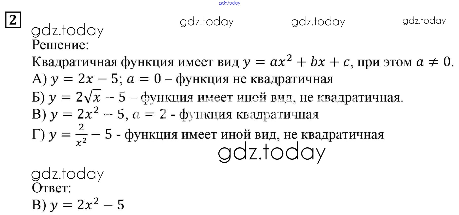 На страницах сайта gdz.today вы найдете учебный и вспомогательный материал, направленный на улучшения знаний школьной программы. ГДЗ - онлайн мир знаний Решение. Проверь себя №2 Учебнику по Алгебре для 9 класса Мерзляк, Полонский Вентана-граф, Просвещение Алгоритм успеха 2016, 2021