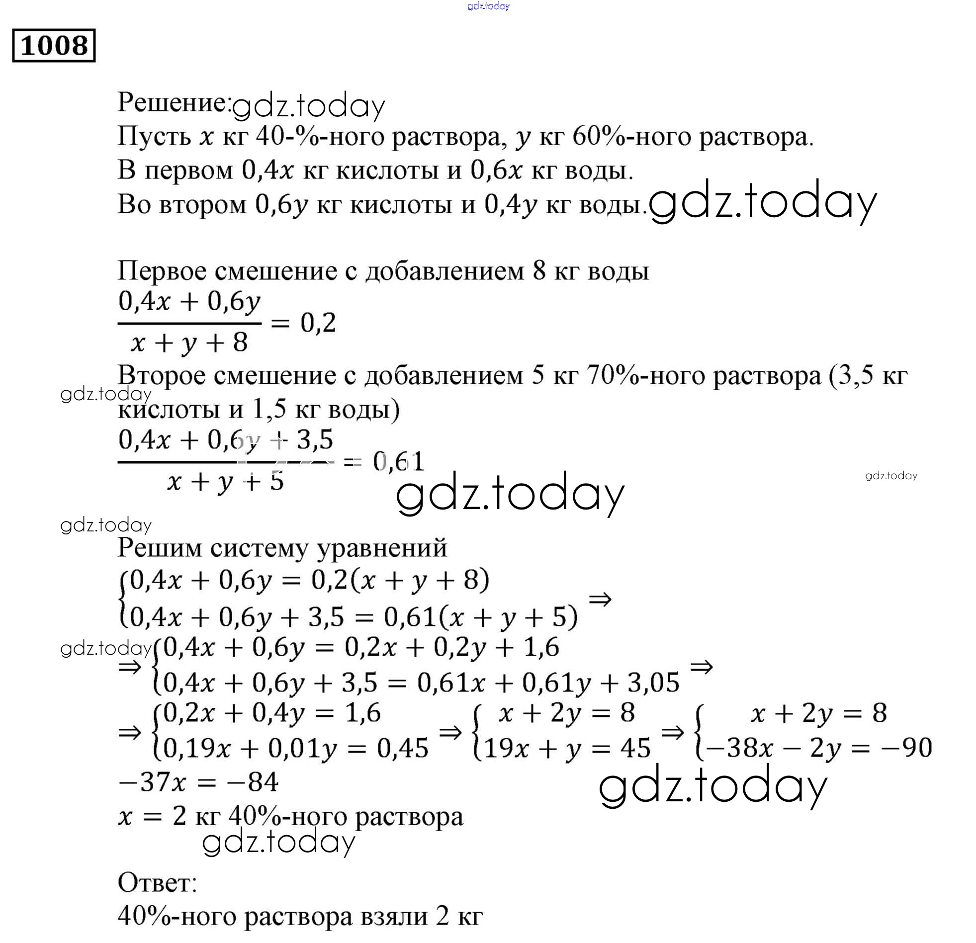 Ответы к Решение. Упражнения 1008 Учебнику по Алгебре для 9 класса Мерзляк, Полонский Вентана-граф, Просвещение Алгоритм успеха 2016, 2021