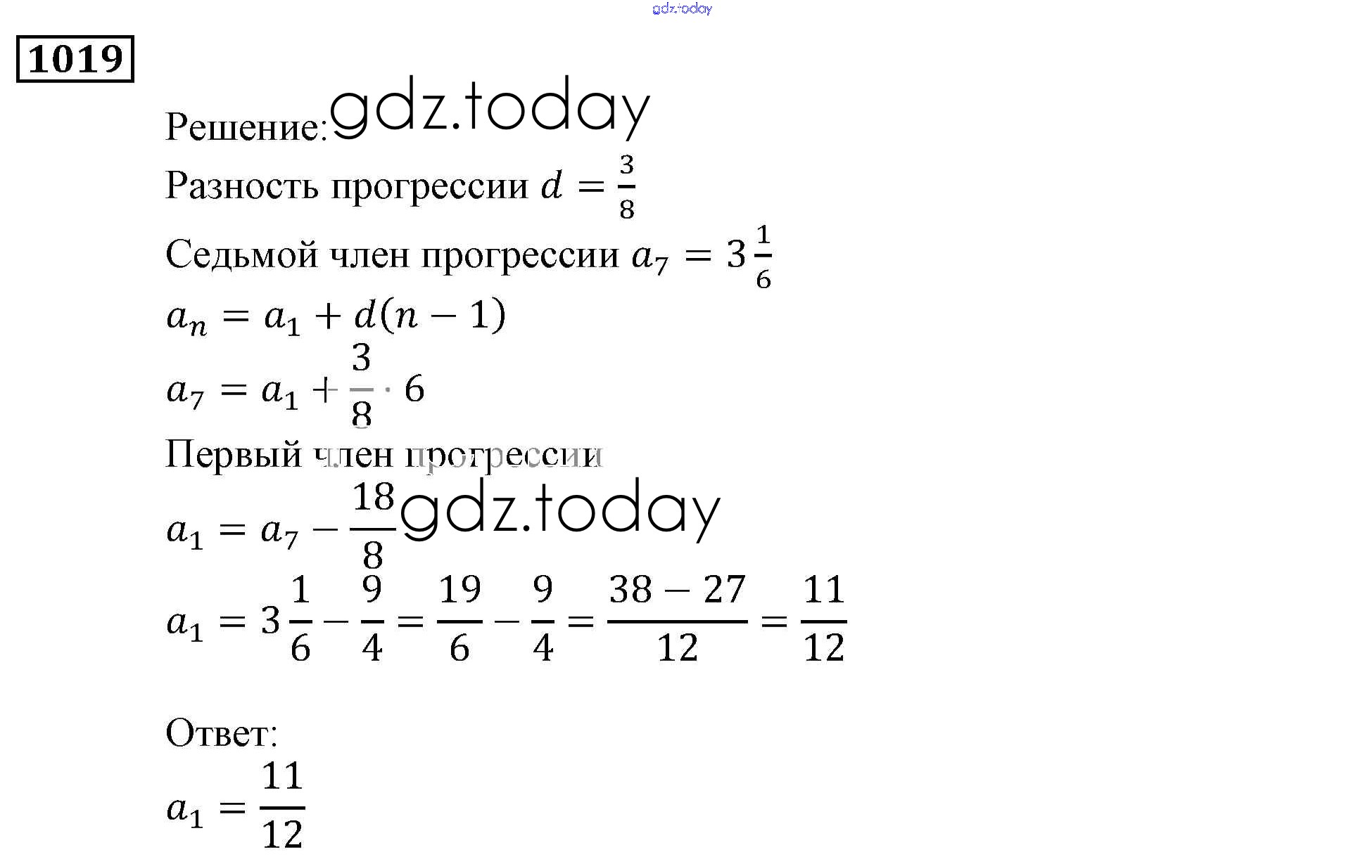 Ответы к Решение. Упражнения 1019 Учебнику по Алгебре для 9 класса Мерзляк, Полонский Вентана-граф, Просвещение Алгоритм успеха 2016, 2021