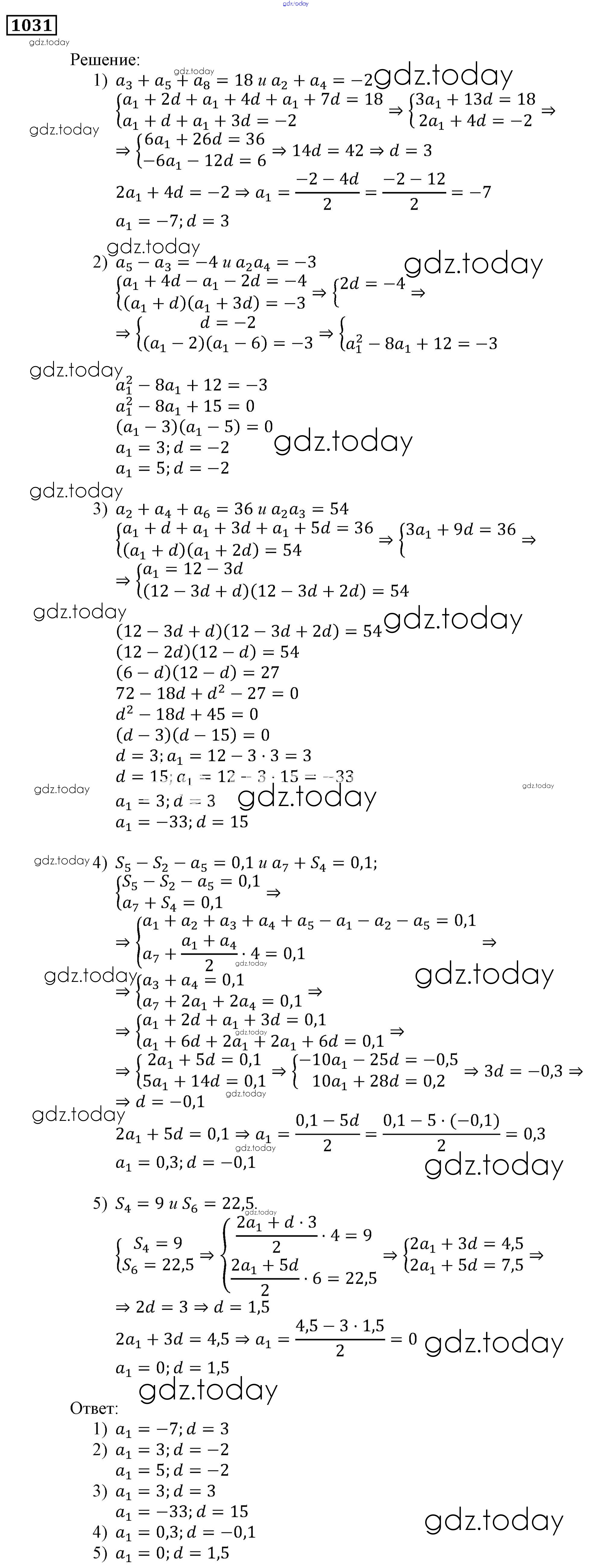 Ответы к Решение. Упражнения 1031 Учебнику по Алгебре для 9 класса Мерзляк, Полонский Вентана-граф, Просвещение Алгоритм успеха 2016, 2021