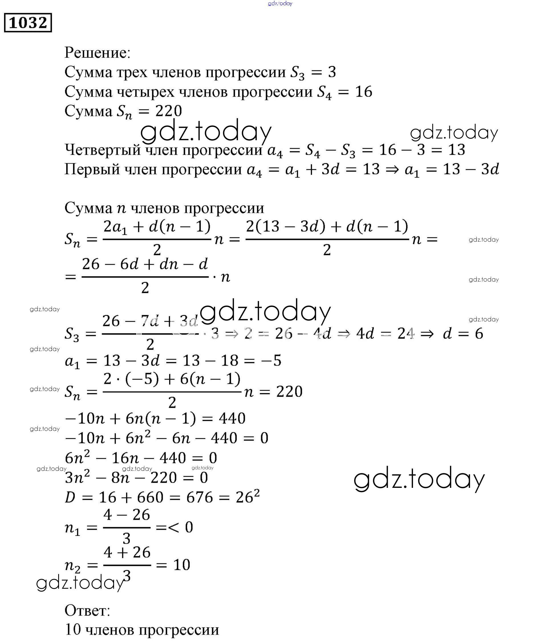 Ответы к Решение. Упражнения 1032 Учебнику по Алгебре для 9 класса Мерзляк, Полонский Вентана-граф, Просвещение Алгоритм успеха 2016, 2021