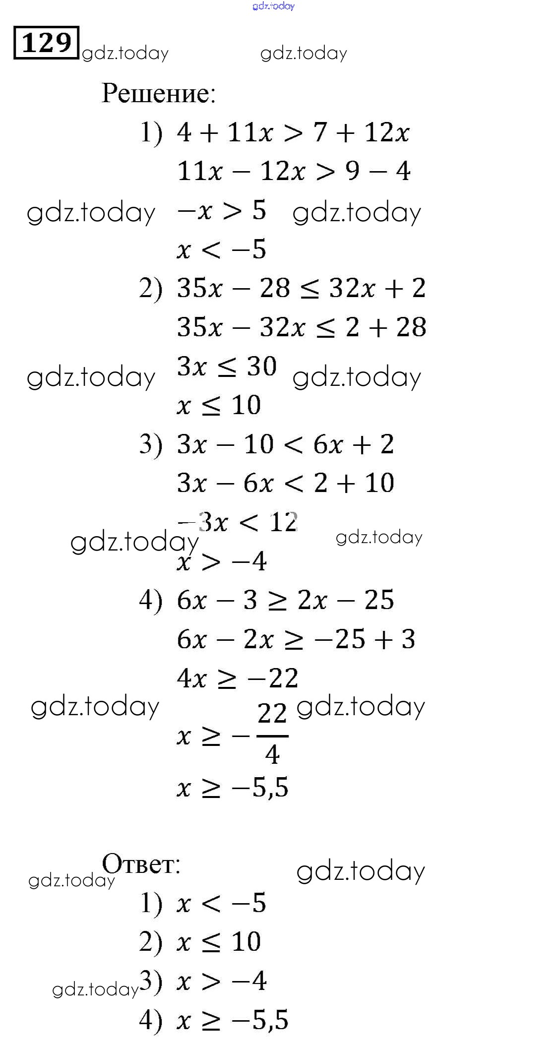 Ответы к Решение. Упражнения 129 Учебнику по Алгебре для 9 класса Мерзляк, Полонский Вентана-граф, Просвещение Алгоритм успеха 2016, 2021