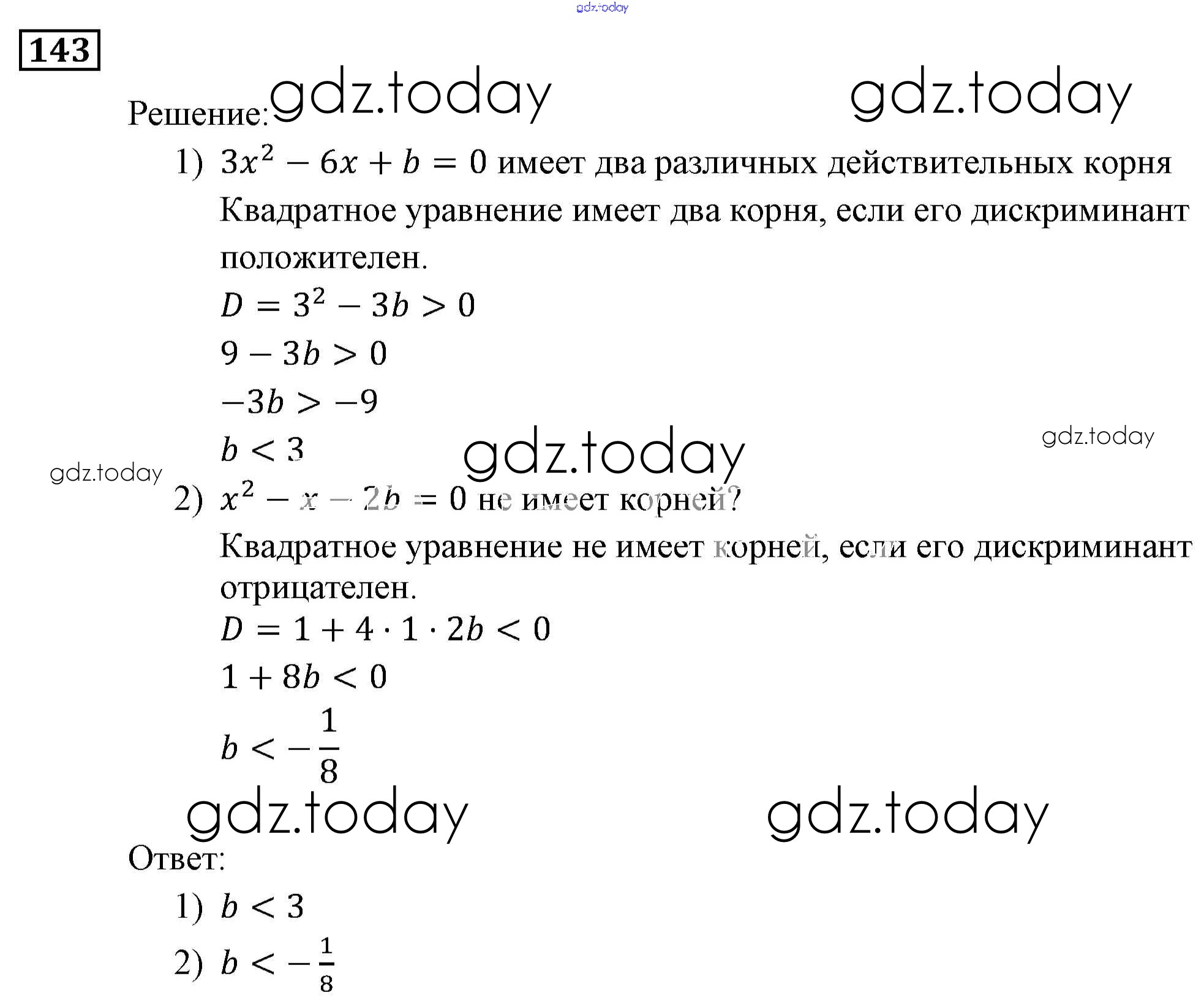 Ответы к Решение. Упражнения 143 Учебнику по Алгебре для 9 класса Мерзляк, Полонский Вентана-граф, Просвещение Алгоритм успеха 2016, 2021