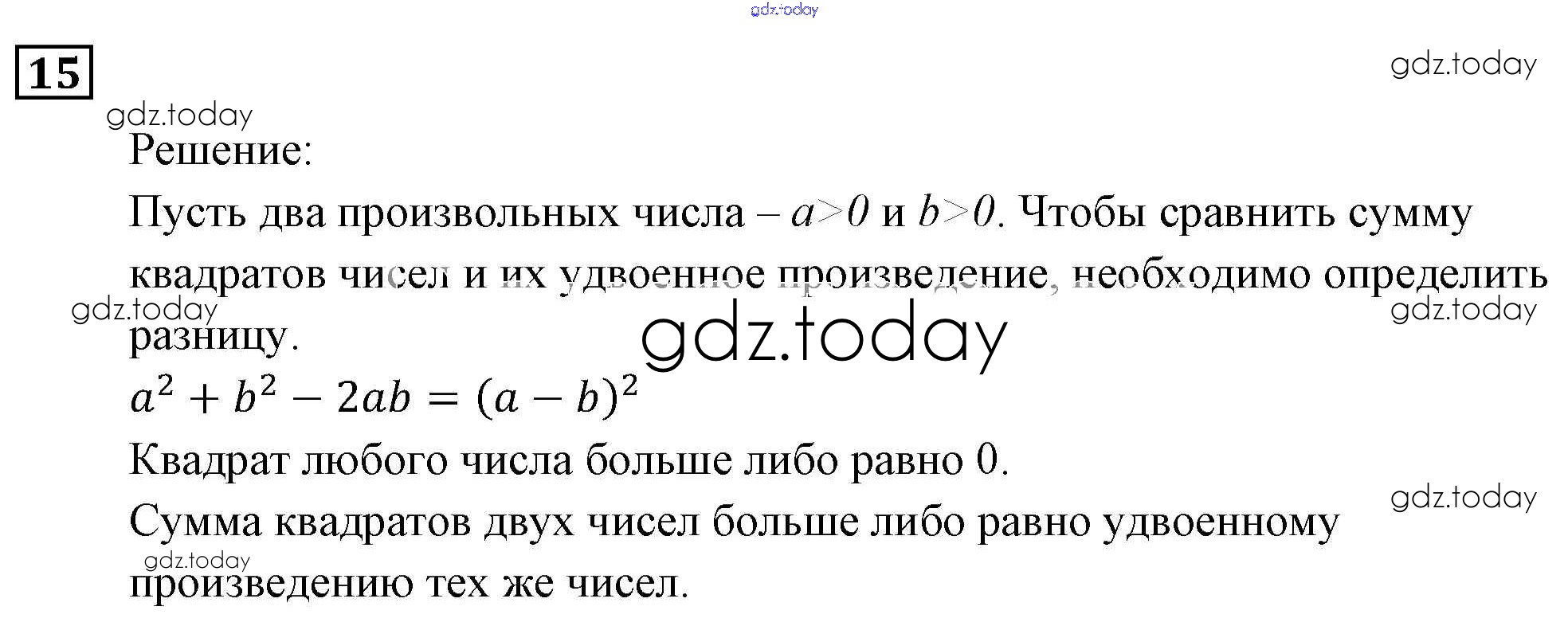 На страницах сайта gdz.today вы найдете учебный и вспомогательный материал, направленный на улучшения знаний школьной программы. ГДЗ - онлайн мир знаний Решение. Упражнения 15 Учебнику по Алгебре для 9 класса Мерзляк, Полонский Вентана-граф, Просвещение Алгоритм успеха 2016, 2021