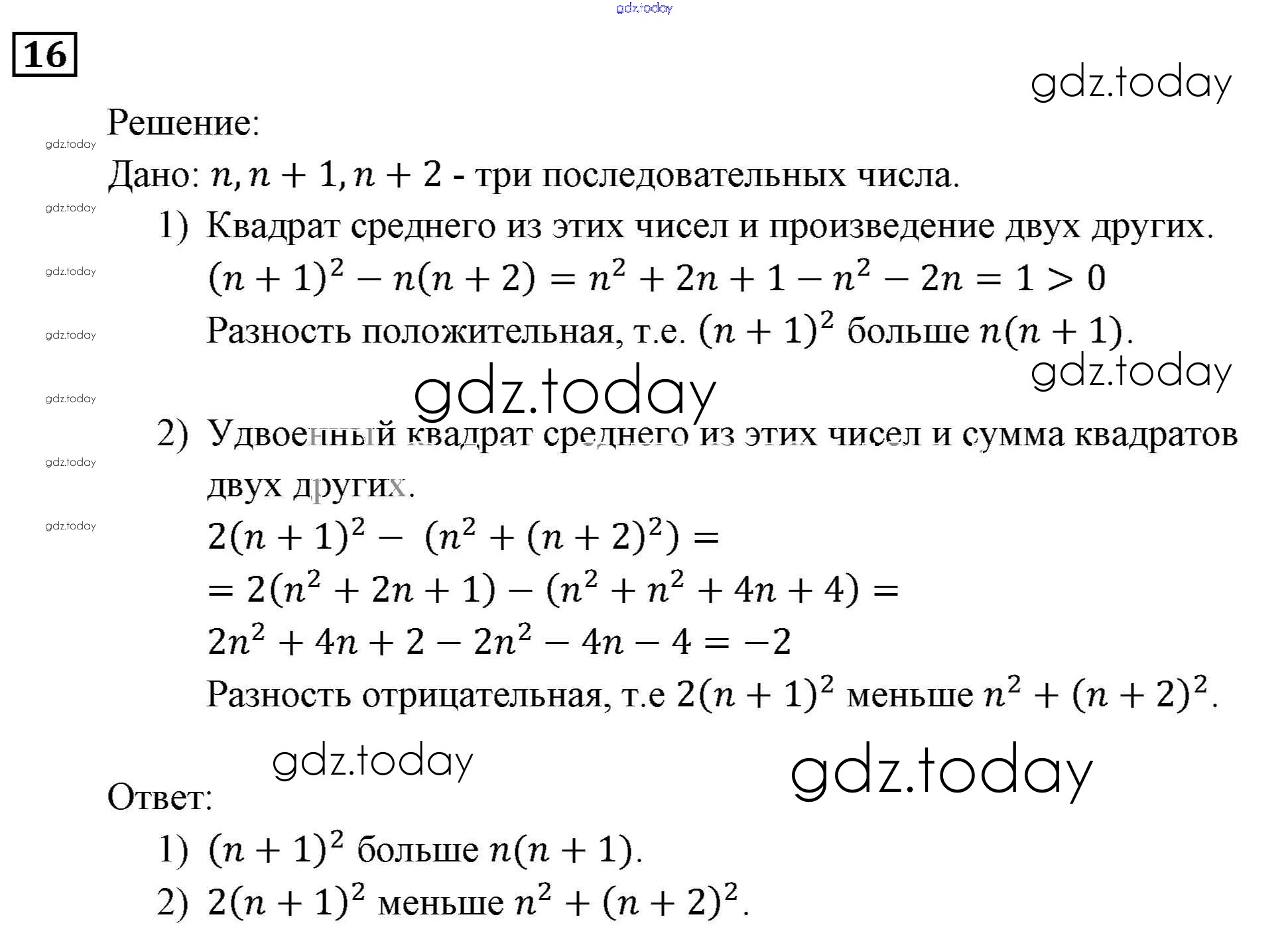 На страницах сайта gdz.today вы найдете учебный и вспомогательный материал, направленный на улучшения знаний школьной программы. ГДЗ - онлайн мир знаний Решение. Упражнения 16 Учебнику по Алгебре для 9 класса Мерзляк, Полонский Вентана-граф, Просвещение Алгоритм успеха 2016, 2021