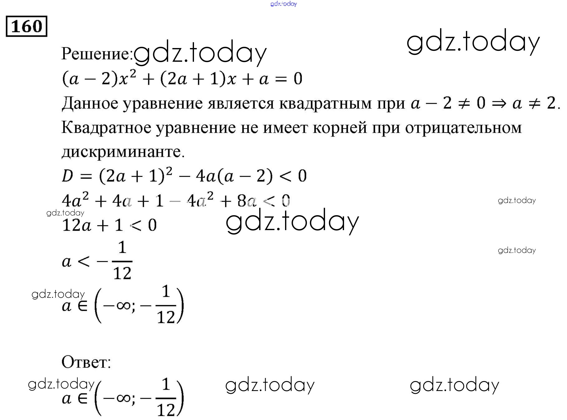 Ответы к Решение. Упражнения 160 Учебнику по Алгебре для 9 класса Мерзляк, Полонский Вентана-граф, Просвещение Алгоритм успеха 2016, 2021