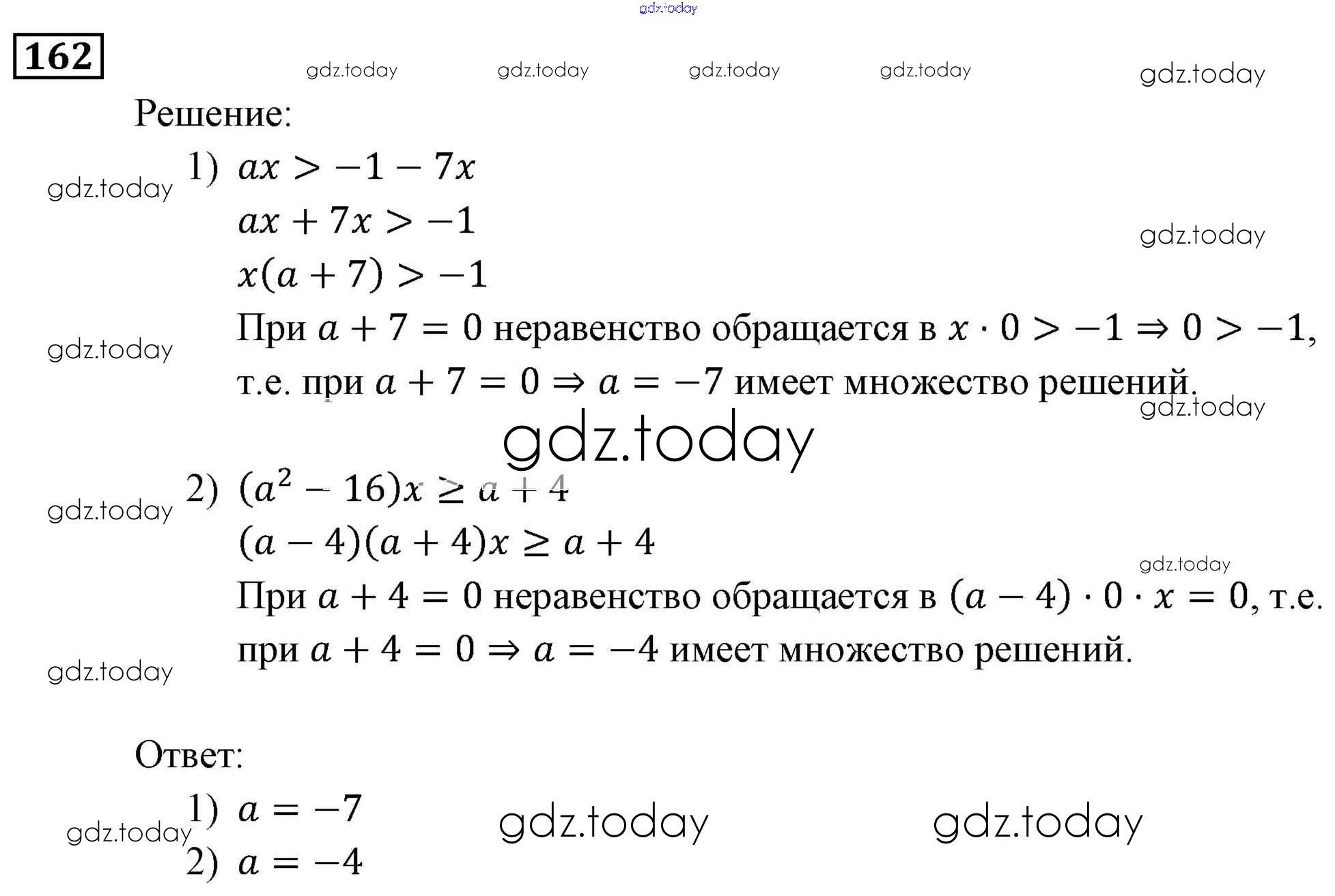 Ответы к Решение. Упражнения 162 Учебнику по Алгебре для 9 класса Мерзляк, Полонский Вентана-граф, Просвещение Алгоритм успеха 2016, 2021