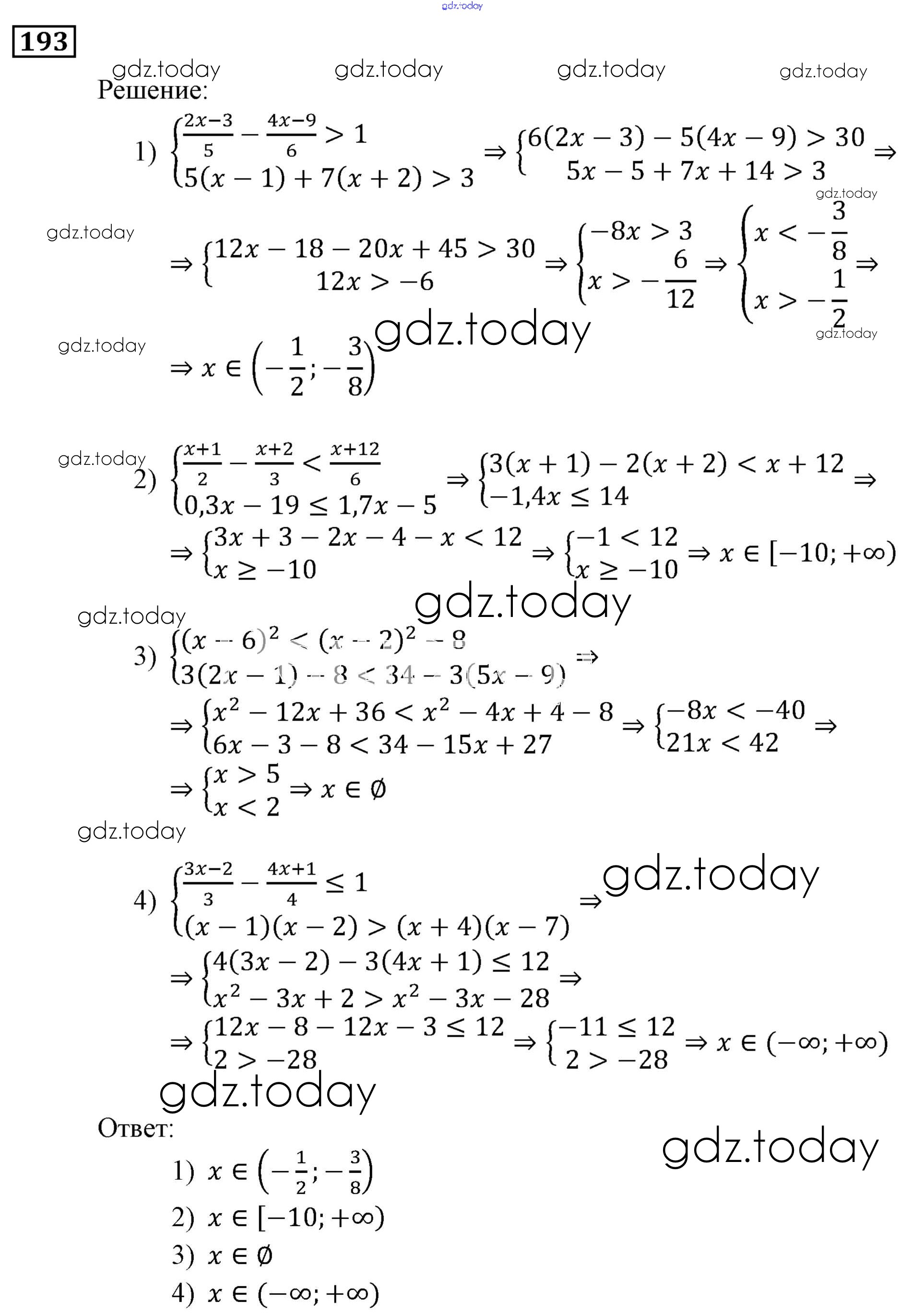 Ответы к Решение. Упражнения 193 Учебнику по Алгебре для 9 класса Мерзляк, Полонский Вентана-граф, Просвещение Алгоритм успеха 2016, 2021