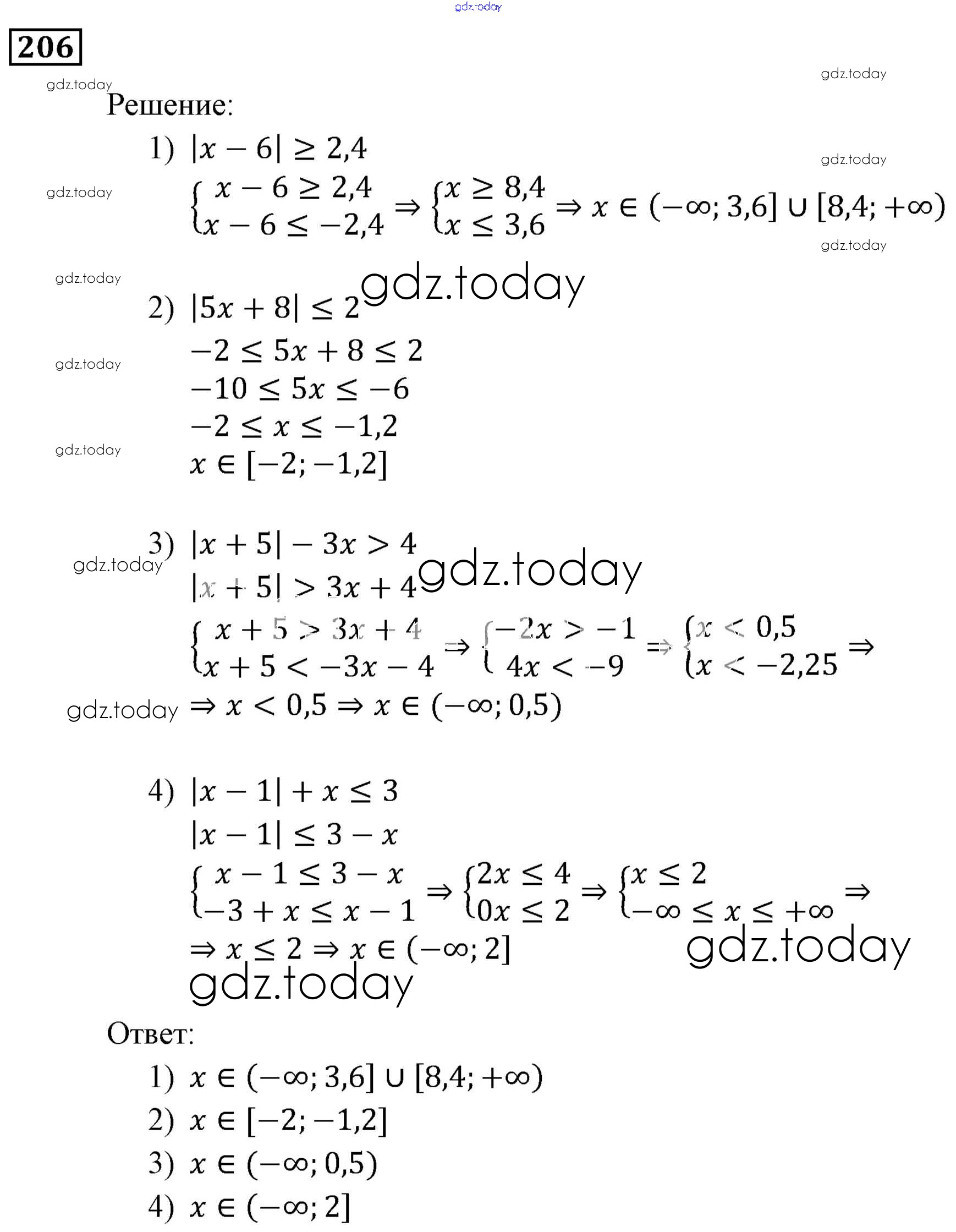 Ответы к Решение. Упражнения 206 Учебнику по Алгебре для 9 класса Мерзляк, Полонский Вентана-граф, Просвещение Алгоритм успеха 2016, 2021