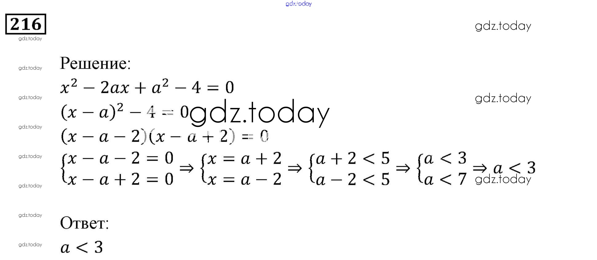 Ответы к Решение. Упражнения 216 Учебнику по Алгебре для 9 класса Мерзляк, Полонский Вентана-граф, Просвещение Алгоритм успеха 2016, 2021